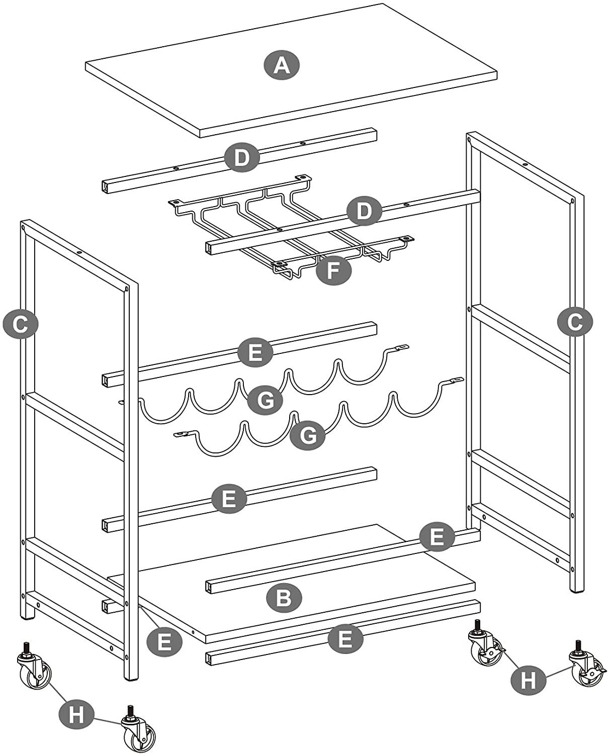 Wijnrek - Keukentrolley - Serveerwagen - 75 x 60 x 40 cm - Op Wieltjes - Wijnfleshouder - Wijnglazenhouder - Opbergrek